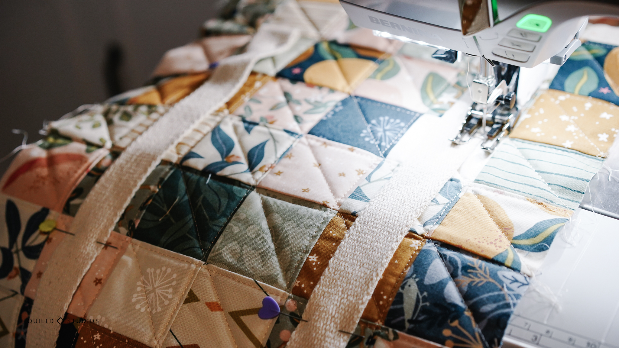 Quilt the foam to the panels using whatever design you'd like. I tend to use the edge of my walking foot as a guide and pick a few seams to follow. I did horizontal, vertical and diagonal lines for mine.