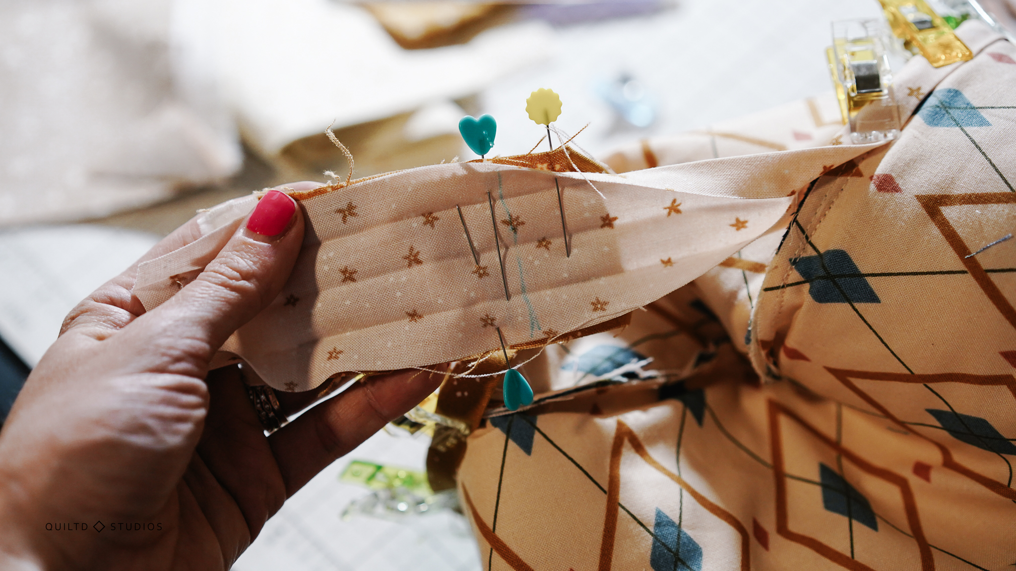 Line up all of your marks and clip in place, remember this will be a 1/2" seam allowance.