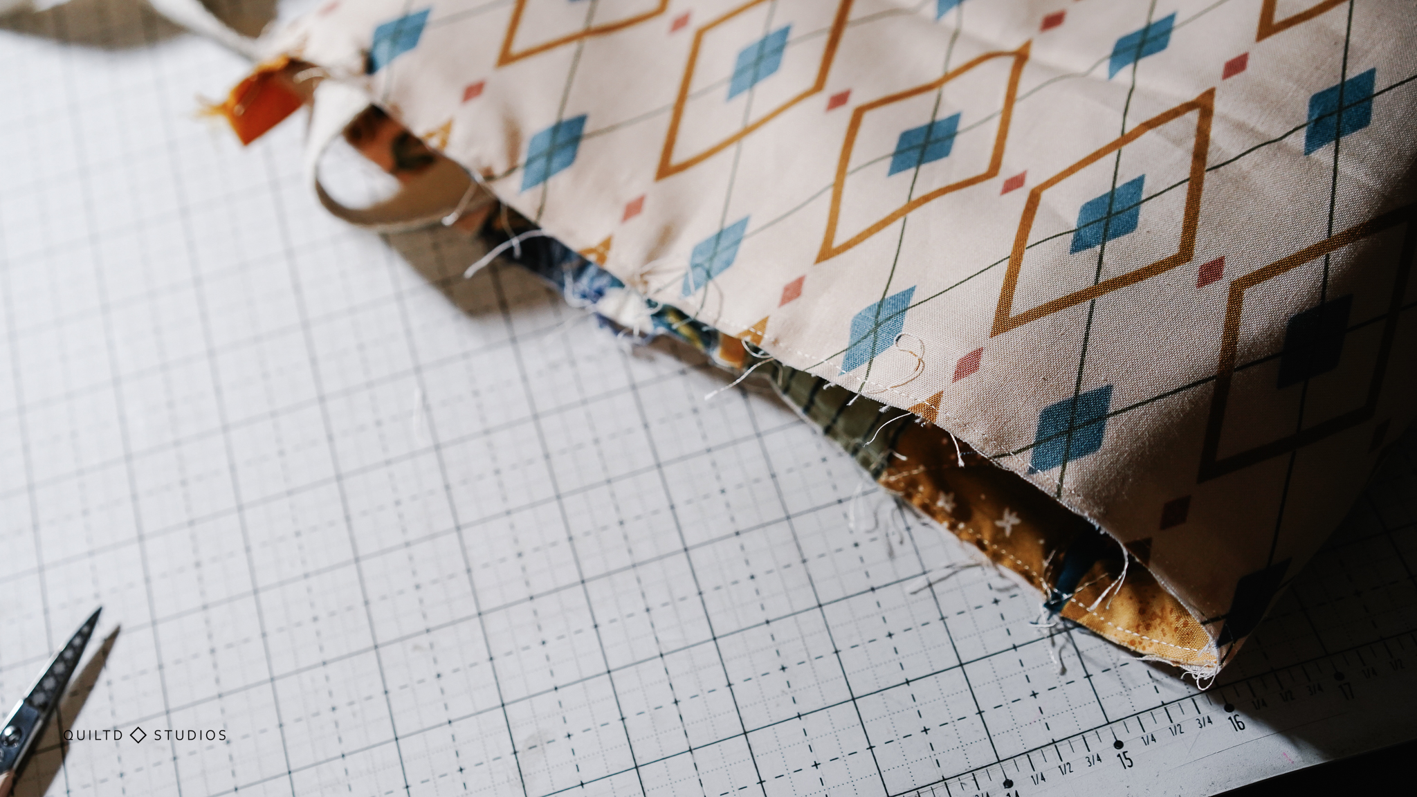 Clip the seams where the interfacing and squares meet up, this will allow us to lay the column down flat to sew the opposite direction.